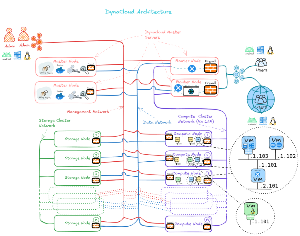 Enables communication between different nodes and services within Dynacloud